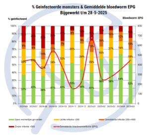 We zitten inmiddels midden in het voorjaar! Dat merken we niet alleen aan het warmere weer, maar ook aan de resultaten van de binnengekomen mestmonsters. De infectiedruk is duidelijk aan het stijgen, zoals we elk jaar rond deze tijd zien.
