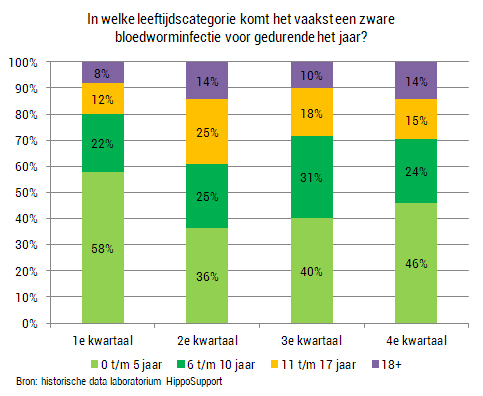 Aangetroffen bloedworminfecties gedurende het jaar, per leeftijdscategorie